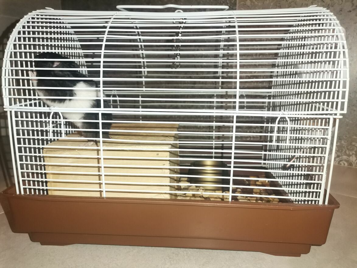 Witam, sprzedam młody chomik syryjski z wyposażoną klatką(domek, poidełko, miseczka) dla gryzoni 33cmcmx23cmx26cm biało-brązową Panama Pet +pokarm gratis.Cena 60zł odbiór tylko osobisty w Jaworznie.