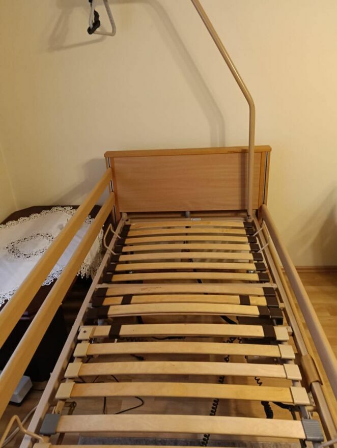 Witam do sprzedania łóżko rehabilitacyjne elektryczne firmy Burmeier- ortopedyczne na pilot w pełni sterowane . Stan bardzo dobry ! Wszystko sprawne 100% plus gratis materac piankowy.Podnoszenie pleców , podnoszenie nóg , podnoszenie całego łóżka aby się nie schylać i nie obciążać kręgosłupa , łózko jest na kółkach można łatwo przestawiać , podnoszenie i opuszczania barierek oraz wysięgnik do podnoszenia się za rączkę .centralny hamulec na cztery koła