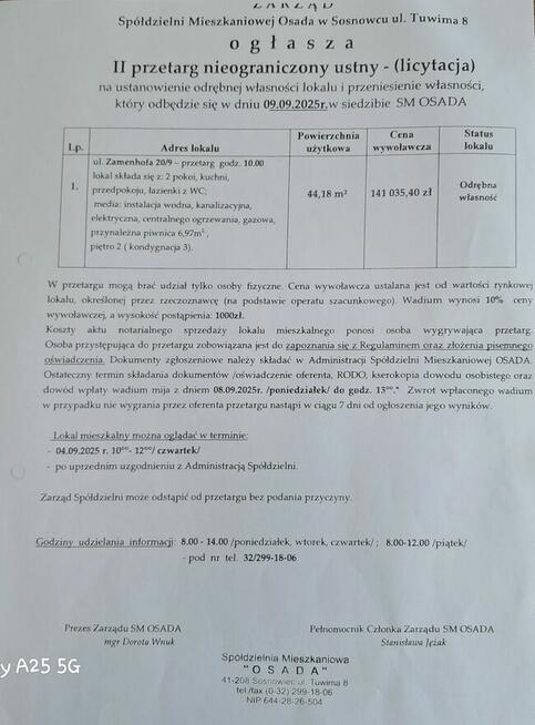 Dzień dobry, zapraszamy serdecznie do udziału w przetargu nieograniczonym ustnym (licytacji) DNIA 09.09.2025 o ...