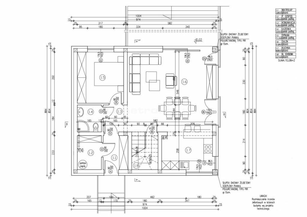 Podpiwniczenie (wysokość 2,30 m): Duże, ocieplone pomieszczenie (69 m²), które można zaaranżować na wiele sposobów.